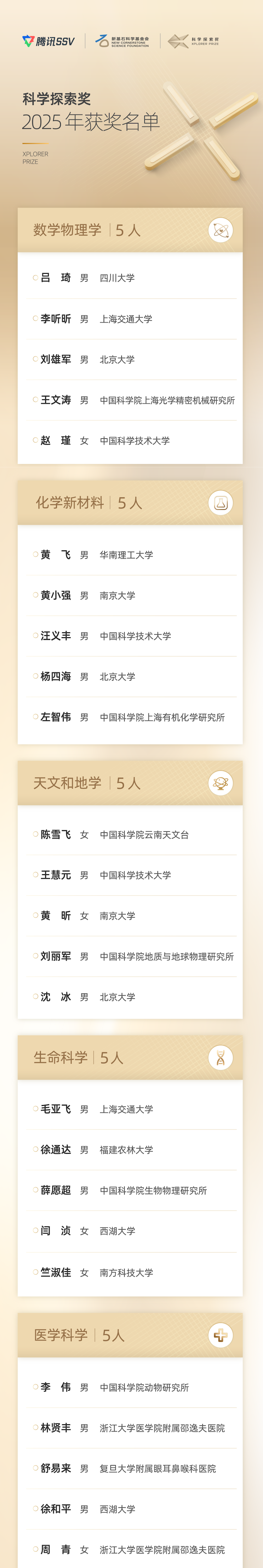 [洞见热管理]获悉,8月25日新基石科学基金会正式揭晓2025年“科学探索奖”获奖名单,50位青年科学家榜上有名。