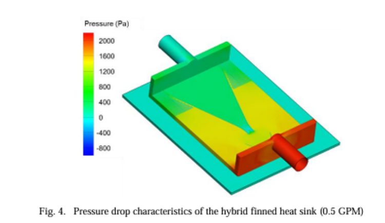 流道结构:采用侧进侧出流型,鳍片板上方有2mm硅胶垫圈,进出口为 ⅜” 内径管道,鳍片板两端有 3.5mm 蓄能器段以确保均匀流动。