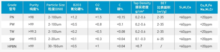 目前公司产品有六方氮化硼粉,氮化硼润滑、导热、脱模涂料及喷雾剂等工业功能性涂料,二硼化钛粉体,热压/热解氮化硼陶瓷及复合陶瓷、导电陶瓷等。